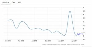It is difficult to say how much of that is due to trade talks and how much it could be a sign of a weaker global economy.  Crude Oil supplies are plentiful, demand is down, and there wasn’t much of a price spike when those tankers were attacked last week in the mid-East.  Still, the DOW Industrial index is near record highs with the recent recovery.